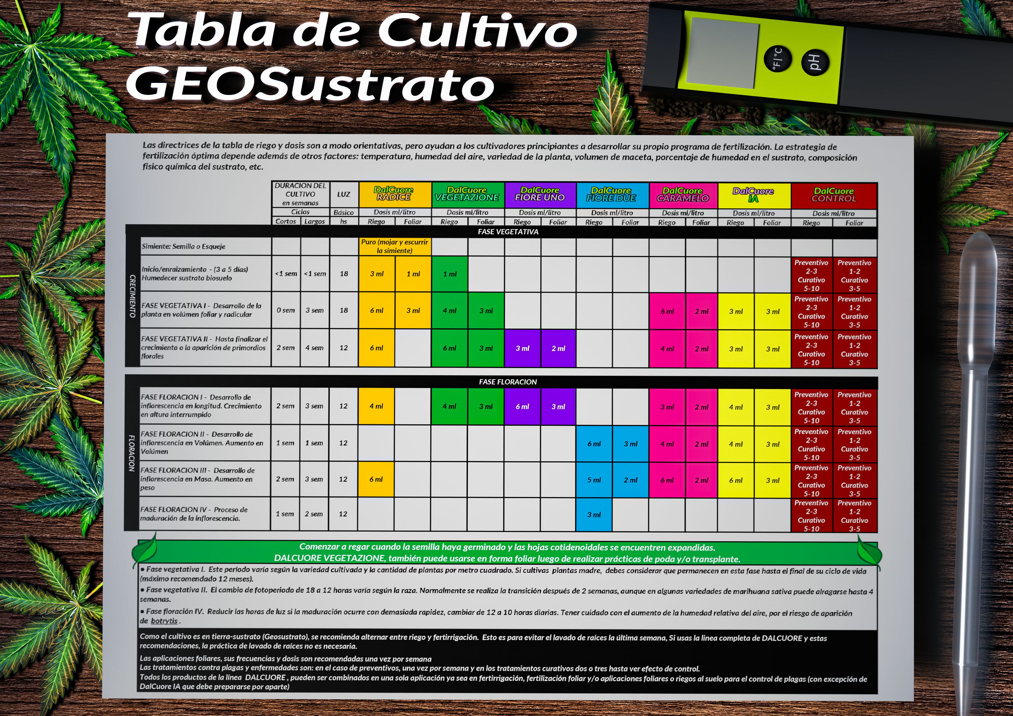 Las directrices de la tabla de riego y dosis son a modo orientativas, pero ayudan a los cultivadores principiantes a desarrollar su propio programa de fertilización.